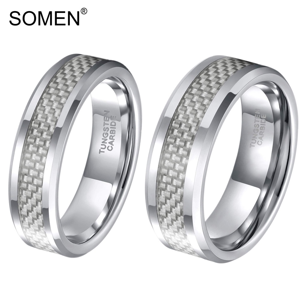 Somen 6mm 8mm Tungsten Carbon Fiber Rings For Men Women Comfort Fit Wedding Bands Size 4 5 15 Shopee Singapore